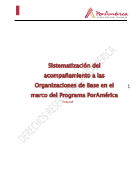 Como o nome indica, este documento contém um instrutivo para orientar o processo de sistematização nas Organizações de Base - ODBs, apoiadas por PorAmérica. Nos primeiros dois capítulos, é proporcionada informação sobre a sistematização, seus objetivos e sua relação com o programa PorAmérica e com os projetos das Organizações de Base. No terceiro capítulo, podem ser encontradas tanto a informação como os guias para a formação do Comitê de Sistematização e a elaboração do Plano de Sistematização, assim como os formulários para se elaborar o primeiro relatório.