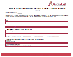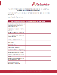 Este é o formulário para ser preenchido com a identificação e a descrição do projeto que as ODBs apresentarão na segunda convocatória ao Fundo Concursável com seus respectivos anexos (versão em espanhol).